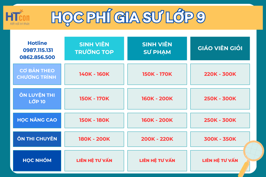 Lưu ý: Học phí gia sư có thể thay đổi tùy thuộc vào thời điểm và yêu cầu của gia đình. Mọi chi tiết xin liên hệ 0987.115.131 để được tư vấn chi tiết hơn.