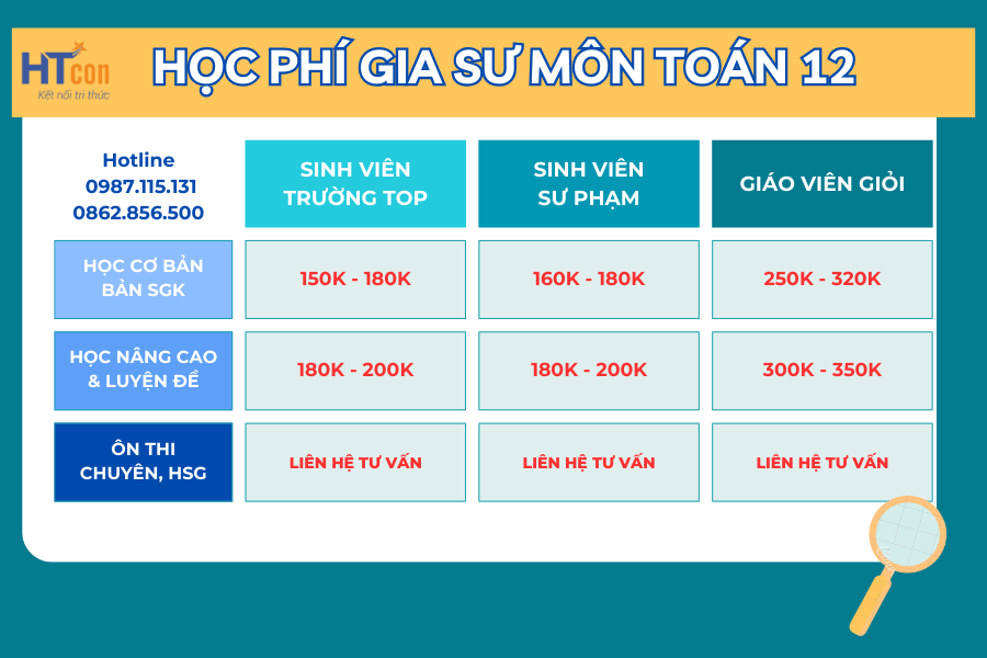 Lưu ý: Học phí gia sư có thể thay đổi tùy thuộc vào thời điểm và yêu cầu của gia đình. Mọi chi tiết xin liên hệ 0987.115.131 để được tư vấn chi tiết hơn.